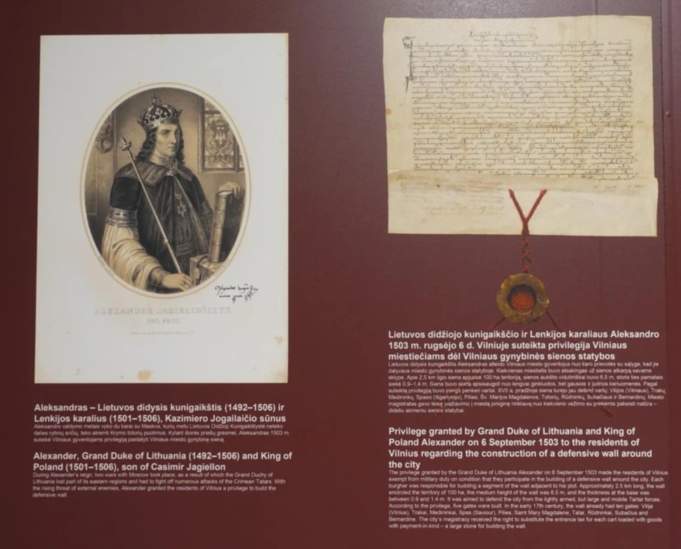 빌뉴스 구시가 남동쪽에는 폴-리 연합왕국의 시작과 끝을 기억하는 군사유적이 있다. 우주피스에서 남쪽으로 빠져나오면 비스듬한 언덕 위로 오르는 계단이 나온다. 그 위에 중세 성벽 일부를 재건한 요새(망루) 박물관(The Bastion of the Vilnius Defensive Wall)이 있다. 16세기 초 리투아니아 대공이자 폴란드 왕(겸임)이었던 야기엘론 왕이 성벽을 건축하게 했다고 한다. 1569년 공식으로 연합왕국을 형성하기 전부터 이미 폴란드와 리투아니아 지배층은 공적으로나 사적으로나 거의 겹쳐 있었다. 비타우타스 대공의 전성기 이후로 영토도 줄고 위상이 약화된 리투아니아 대공국은 러시아나 스웨덴의 군사적 위협으로 계속 고비를 맞았다. 폴란드와의 연합은 군사적 약세를 만회하는 방편이기도 했다. 연합왕국을 이루기 얼마 전 일단 완공했다고 하는 빌뉴스 성벽과 요새는 연합왕국 시절 내내 전쟁이 계속되어 증축과 개축을 반복했다. 성벽 건축가는 전혀 모르지만 빌뉴스에는 석공 길드, 목수 길드도 있었고 르네상스의 바람을 타고 독일이나 이탈리아 기술자들이 오갔을 거라 추정한다.