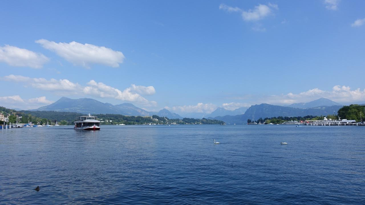 생각보다 구경거리도 많고 인상적이어서 베른에서 보낸 시간이 길어졌다. 여유 있는 점심식사가 불가능해서 아케이드 끝 지점의 성문 옆 맥도널드로 해결했다. 맥도널드 가격이 만만찮았지만 다행히 부모님도 잘 드셨다. 오랜만의 맥도널드는 고향의 맛으로 다가온다. 점심 후 2시간 가까이 부지런히 달려 루체른 호숫가에 도착했을 때는 오후 3시 반, 호숫가는 관광객이 넘쳐났다. 요 며칠 보기 어려웠던 화사한 햇살이 비친 날이다. 그림같이 아름다운 호수로 유명한 루체른에서 오래간만에 인기 관광지다운 단체 관광팀도 여럿 보았다. 뱃멀미 우려 때문에 우리 가족 여행에는 유람선이나 보트 탑승이 없다. 루체른에서의 오후 계획은 원래 여유로운 호숫가 산책과 우아한 휴식이었다. 예상과 달리 사람이 너무 많아서 베른에서보다도 더 전투적으로 다니게 되었다.