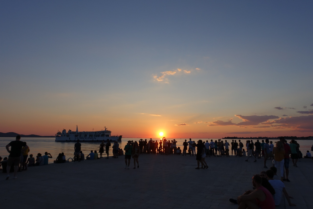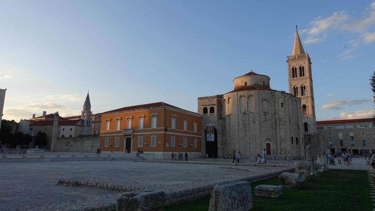 해가 긴 6월 자다르의 일몰 시간은 저녁 8시 반 정도였다. 그 유명한 석양을 보기 위해 바로 구시가로 향했다. 자다르 구시가는 섬은 아니고 육지와 평행으로 형성된 반도지만 사이의 만을 건너는 다리로 진입해야 하는 요새 형태다. 구시가 시내는 로마의 흔적도 있지만 그보다는 중세 베네치아 치하의 건물이 주로 남아있었다. 요새 자체도 그렇고 중심의 광장과 시청사, 성당의 모양도 중세 이탈리아나 르네상스 같은 단어를 연상시켰다. 석양 이야기만 많아서 유적은 생각도 안 했었는데, 돌로 깔린 오래된 바닥부터 구시가 전체가 유적이었다. 유적 좋아하는 우리 가족 마음에 딱 드는 풍경이 어스름한 저녁 빛깔로 물들고 있었다.
