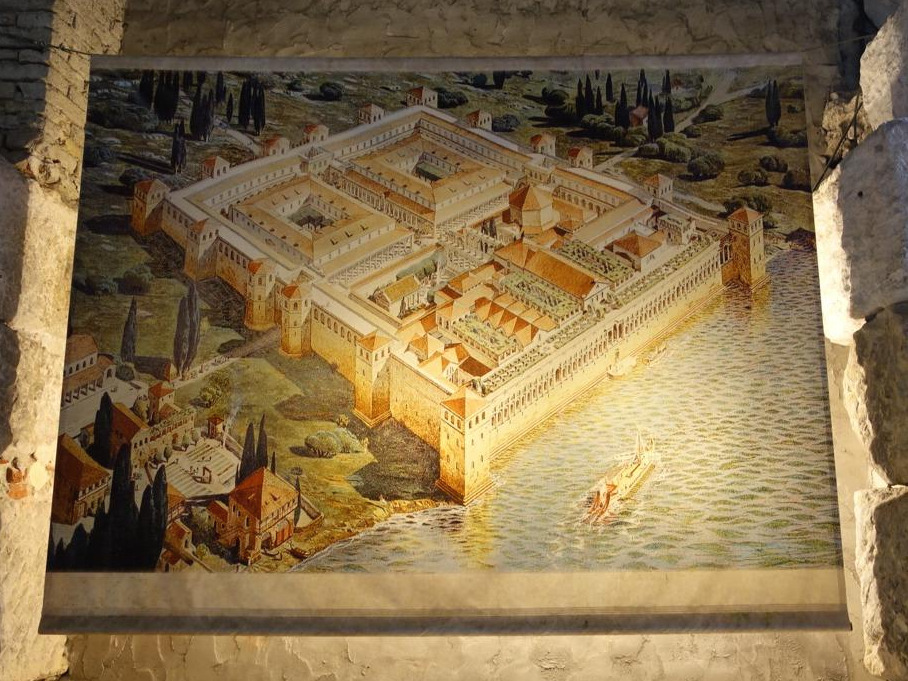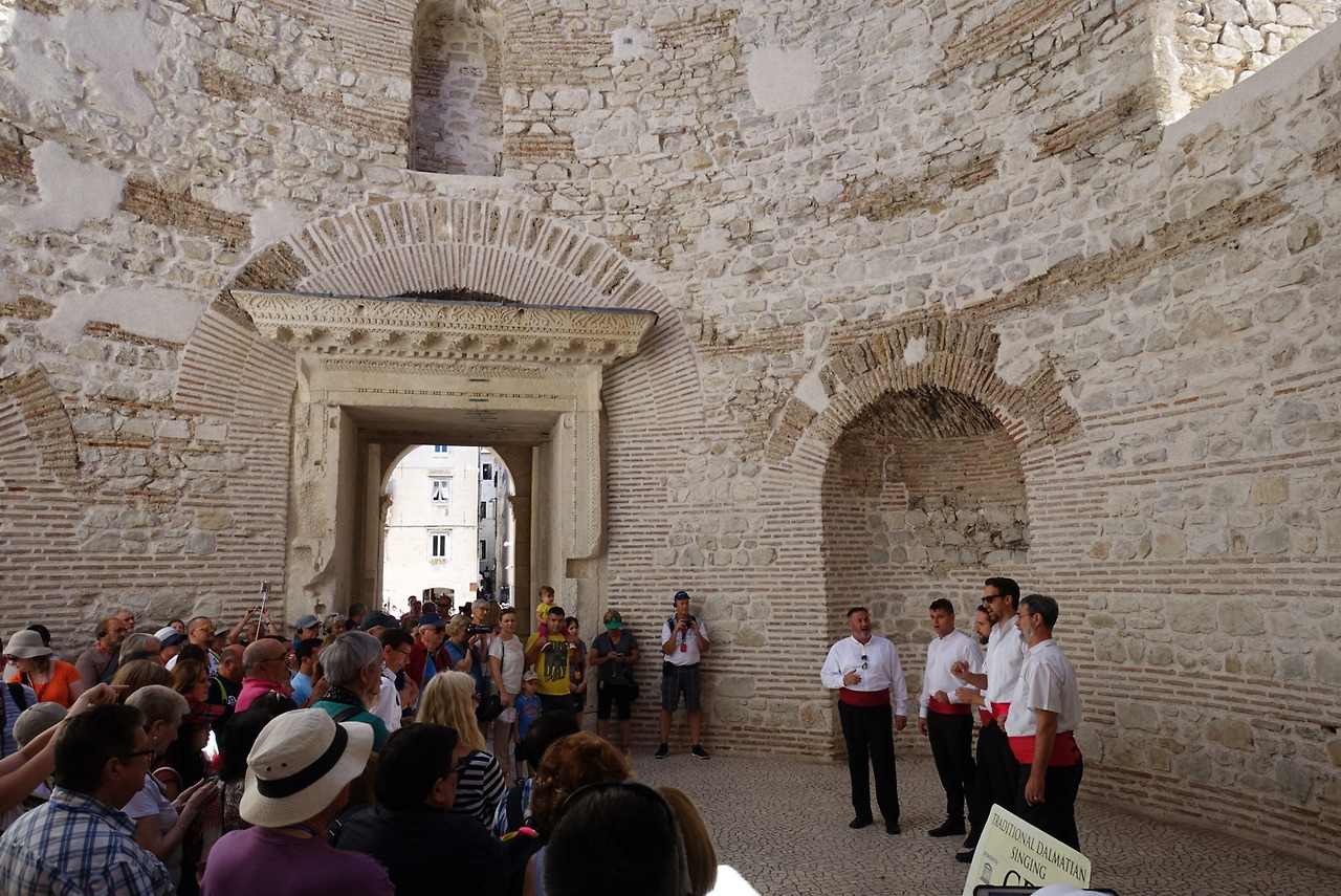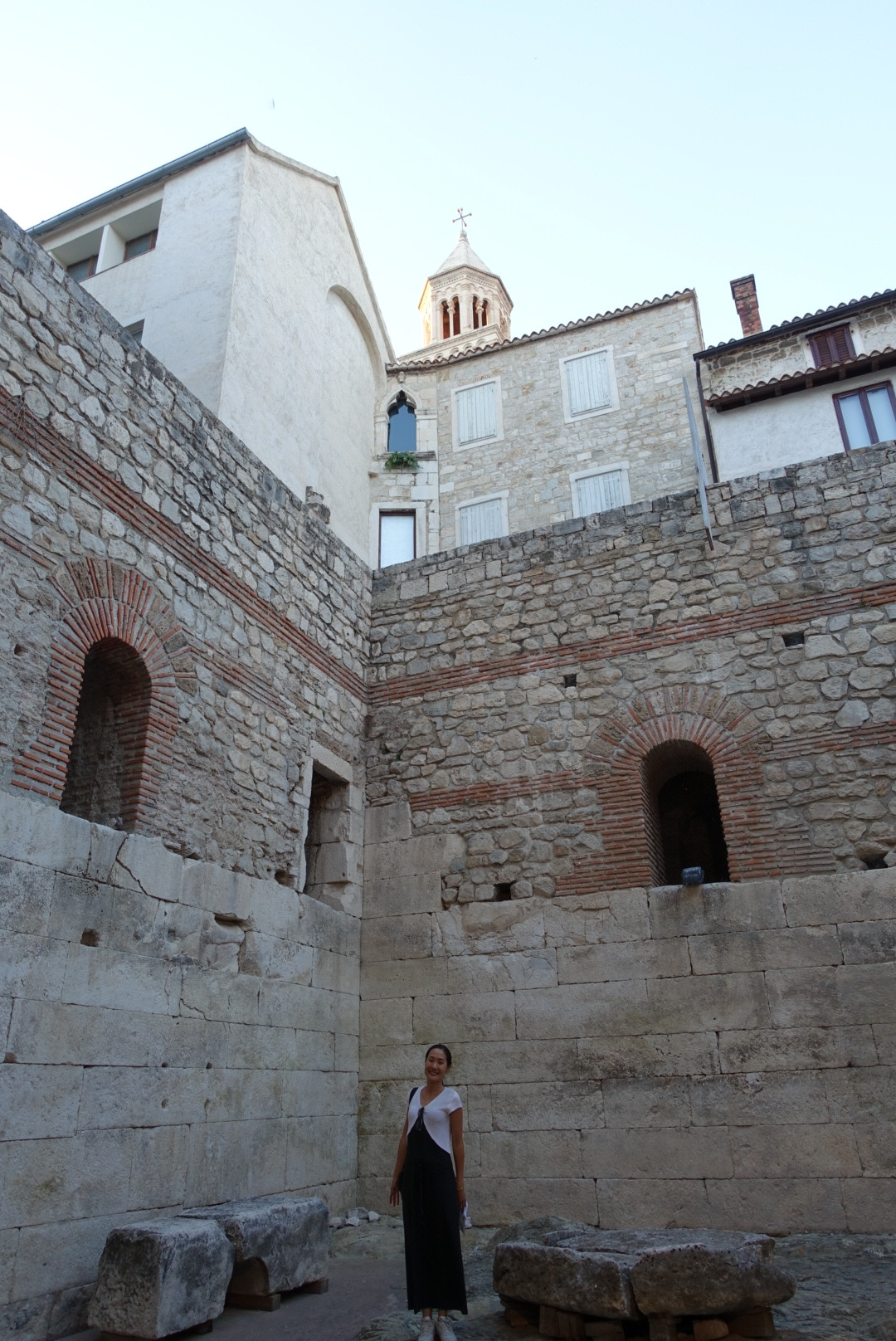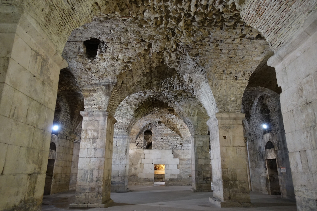 고대 로마 후반으로 갈수록 이탈리아 본토 태생이 아닌 황제가 많이 등장한다. 이곳 출신이었다는 디오클레티아누스도 그중 하나다. 군인 출신으로 황제에 올랐다가, 노후를 보낼 셈으로 고향에 거처를 만들었다고 한다. 노후용 황제궁이었다가 묘소가 되었고, 그 성채가 고스란히 구시가지가 되었다. 수없이 용도변경이 되었지만 기반과 윤곽은 그대로다. 중세 때에도 헝가리나 이탈리아의 지배를 받은 주요 항구도시였다. 베네치아 공화국의 주요 거점이 되면서 로마 유적 위에 중세 건물이 겹쳐 지어졌다. 로마 황궁 시기의 지하층 공간을 발굴해서 입장료를 받고 들여보내 주는 곳이 있었다. 주로 지하 창고나 상하수 시설, 황궁 하인들의 공간이다. 중간 즈음에 지상으로 뚫린 허물어진 터가 나오는데, 아래부터 위로 시대에 따라 달라진 벽 구조가 뚜렷이 구별된다. 큼직큼직하게 돌을 깎아 맞춘 고대 로마에 비해 작게 돌을 깎아 쌓은 중세 건축 부분이 더 어설퍼 보인다. 중세보다 고대 건축이 더 고차원적으로 보이는 것은 여기도 마찬가지다. 구시가에 남아있는 돌바닥이나 큰 구조는 거의 고대 로마 버전이다. 중세의 영향은 그 위에 지은 건물들의 상층부, 구시가 밖으로 확장된 건물들에 남았다.