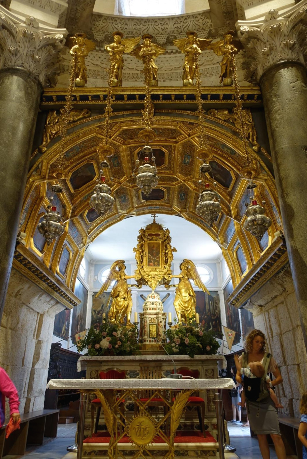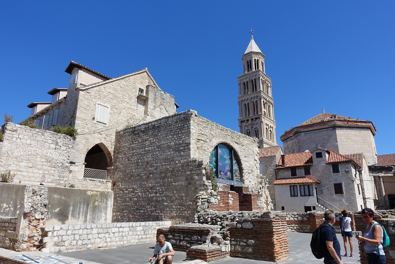 디오클레티아누스 황제의 묘였다는 팔각형의 무솔레움은 중세 때 성 돔니우스(St. Domnius) 성당으로 바뀌었고 나중에 첨탑이 추가되었다. 중세 이탈리아 풍 첨탑은 독보적인 전망대 겸 랜드마크 역할을 한다. 성당은 7세기에 생겼다는데 점점 장식이 덧붙여져서 문짝부터 제단, 내부 곳곳이 대단히 화려했다. 세계에서 가장 오래된 성당 중 하나다. 사실 디오클레티아누스는 기독교 박해에 열심이었던 황제다. 그 무덤 자리에 성당이 들어섰으니 흥미로운 이야기다. 성당의 주인공인 성 돔니우스도 디오클레티아누스 박해 때 순교한 성직자였다. 황제 무덤 흔적은 오로지 팔각형의 건물 모양뿐, 내부는 그의 박해로 순교한 사람들을 기념하는 가톨릭 성당으로 완전히 바뀌었다. 지하 공간도 성녀 루시에게 헌정된 방이었다. 그녀도 디오클레티아누스의 박해 때 순교했다는데, 눈이 뽑히는 방식으로 처형당해서 맹인들의 수호성인이 되었다는 설명이 있었다. 조금 떨어져 있는 로마의 옛 제우스 신전도 성 요한의 이름을 딴 세례당이 되었다.