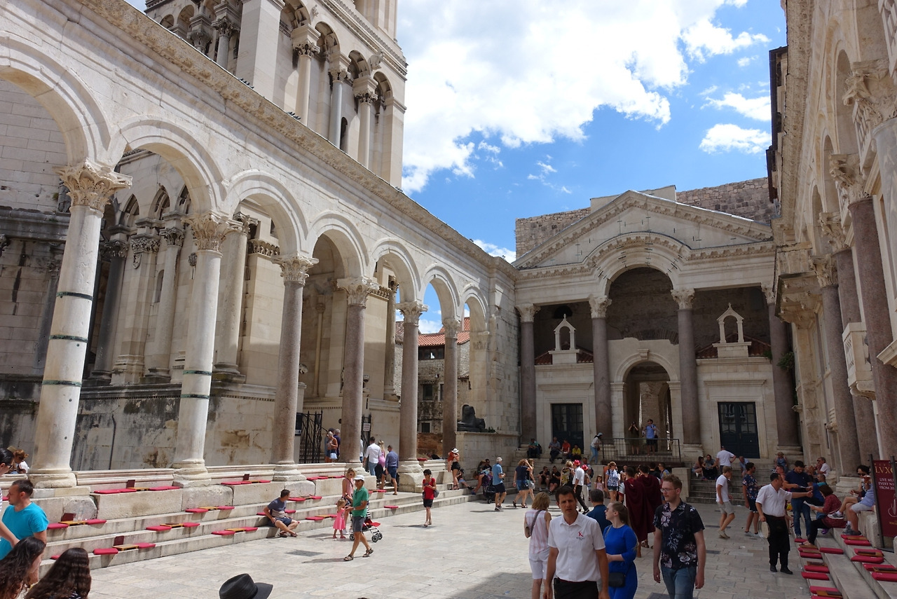 스플리트에서 이틀 밤을 묵을 계획을 할 때는 사실 큰 기대를 하지 않았다. 플리트비체, 두브로브니크를 다 본 이후라 더 이상 감동은 없을 줄 알았다. 구경보다는 해안에서 쉬려고 했다. 혹시 시간이 남으면 무엇을 할지, 주변에 다녀올 만한 관광지를 물색하기도 했다. 그런데 전날 저녁에 도착해서 잠시 들여다본 구시가지는 그야말로 놀라웠다. 정사각형에 가까운 옛 로마 황궁 터가 남아있다는 정보는 물론 알고 있었다. 하지만 그렇게 잘 남아있을 줄은 몰랐다. 게다가 그 로마 유적을 지금 이탈리아 로마처럼 격리 보호하는 게 아니라 생활에 적극 활용하고 있다. 개보수도 하고 주요 장소는 입장료를 받는 곳도 있다. 하지만 대부분은 식당, 카페, 가게, 관공서, 숙소 등 요즘의 필요에 따라 쓰고 있었다.