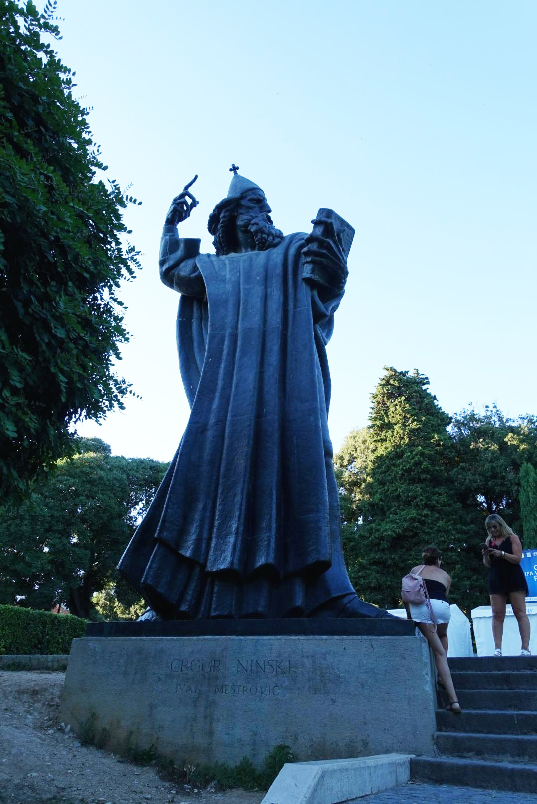 스플리트에 로마 황궁 유적만 있는 것은 물론 아니다. 지금 스플리트에서 황궁터는 극히 일부일 뿐이다. 북문 밖으로 나가면 커다란 '닌의 그레고리우스' 동상이 있는 꽤 큰 시민공원이 나오고 사방으로 도시가 펼쳐진다. 이 사람은 중세 시절 주교였는데 라틴어 대신 크로아티아 지역 언어를 사용하려 했다는 이야기가 있었다. 그래서 20세기 민족정신의 상징으로 이렇게 큰 동상을 만든 모양이다. 정작 유명한 건 엄지발가락 부분을 만지면 행운이 온다는 설이었다. 그 발가락만 반들반들하다. 남문 밖 해변으로 나오면 중세풍 낮은 건물들이 이어지는 휴양지 스플리트의 해안이 펼쳐진다. 사실 로마 유적보다는 요트나 유람선을 타고 가까운 섬으로 바다 구경을 가는 게 더 일반적인 스플리트 관광법이다. 우리 가족은 초대형 페리가 아닌 한 배 타는 데는 취미가 없고 유적에 대한 선호가 확실해서 구시가에 집중했을 뿐이다. 요트가 깔린 해안가를 따라 카페와 식당이 길게 이어져 먹을 곳도 많다. 산책길 조성도 잘 되어 있어 한 바퀴 걸으며 경치를 즐기기도 그만이었다.