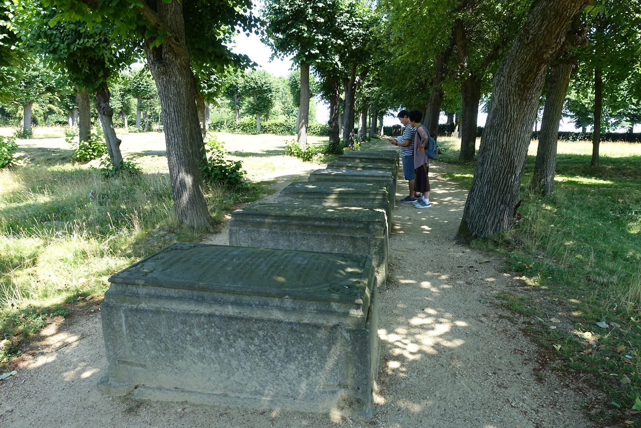 안내소 직원분이 친절하게 동네 약도를 그려 가며 갈 곳을 짚어주셨다. 마을 뒤편 길을 따라 좀 올라가면 이내 널찍한 공동묘지가 나온다. 모라비안 교도들은 묘지도 검소해서 바닥에 네모난 작은 돌판으로 이름만 써놨다. 도끼 주인인 크리스천 데이비드 씨 무덤도 똑같이 조그맣다. 이곳에 정착지를 내주고 본인도 공동체 일원으로 살았다는 진젠도르프 백작 일가 무덤만 석관 형태로 몇 개 나란히 놓여있었다. 중앙의 교회는 옛 모습은 거의 없고 딱 필요한 것만 갖추었다. 하얀 내부가 인상적이었다. 교회에 딸린 선교 홍보관에는 미국 감리교의 유명 신학자인 존 웨슬리 흉상도 있다. 모라비안 공동체의 신앙운동이 미국 복음주의 교회에 미친 영향을 보여준다. 아시아, 아프리카 등으로 진출한 해외 선교 박물관도 따로 있다. 마침 날씨가 더할 나위 없이 화창해서 묘지와 마을 산책이 힐링이었다. 이런 데 살면 생활이 경건할 수밖에 없을 듯하다.