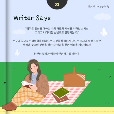 “행복은 일상을 대하는 나의 태도와 세상을 바라보는 시선 그리고 나에 대한 신념으로 결정되는 것”