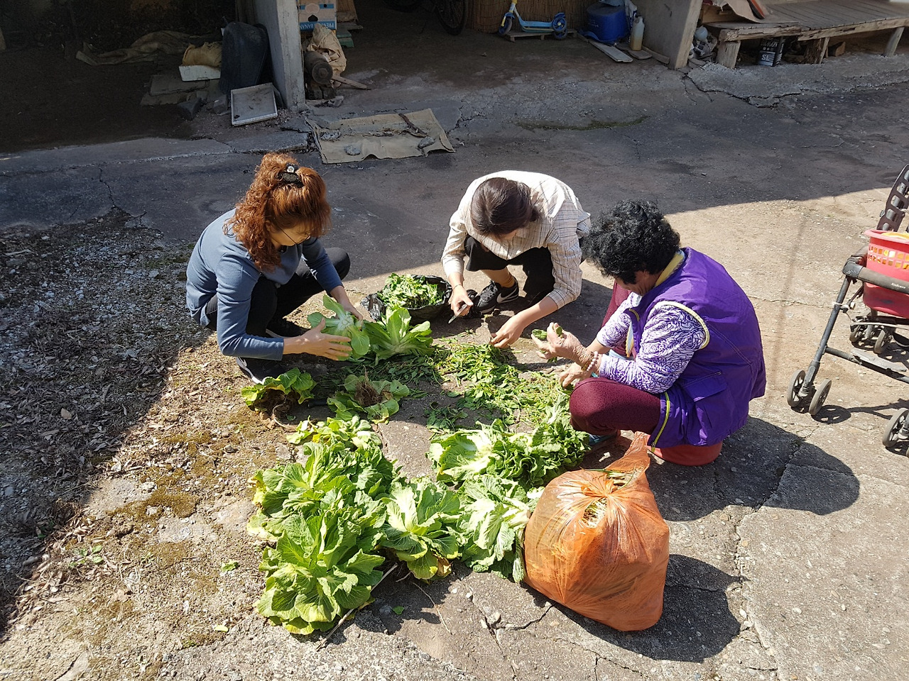 남편이 사진 한 장을 보내왔다. 이 평범한 사진을 가만히 보고 있자니 재미있는 사실 하나를 발견했다. 사진의 주인공은 시할머니 시어머니 그리고 나, 며느리다. 세 여자가 함께 채소를 다듬고 있는 게 왜 이렇게 신선한지. 그 많은 채소 중에 때마침 시금치를 다듬고 있던 3대 고부사이, 참 신기한 가족의 모습이다.