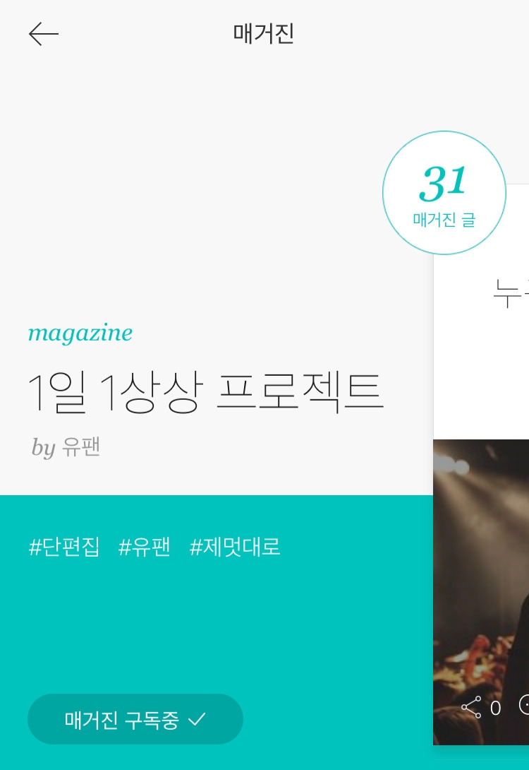 : 매거진에서 가장 에세이스러운 글로 유일하게 다음 어딘가 소개된 것 같은 글이다. 역시 브런치에는 압도적으로 에세이가 많고 소개되는 글의 경향도 그런 것 같다.