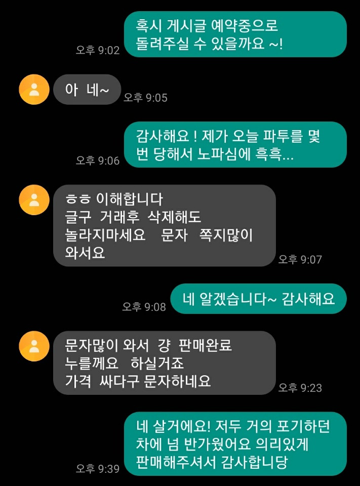 물론 나는 광주에 살고, 이건 서울 직거래라고 쓰여 있지만 어떠하리, 무슨 수를 써서라도 구해야 하는 티켓임이 분명했다. 행여 지금 이 순간에도 누군가가 연락을 하고 있는 것은 아닌지 걱정하며 판매자에게 문자를 넣었다.