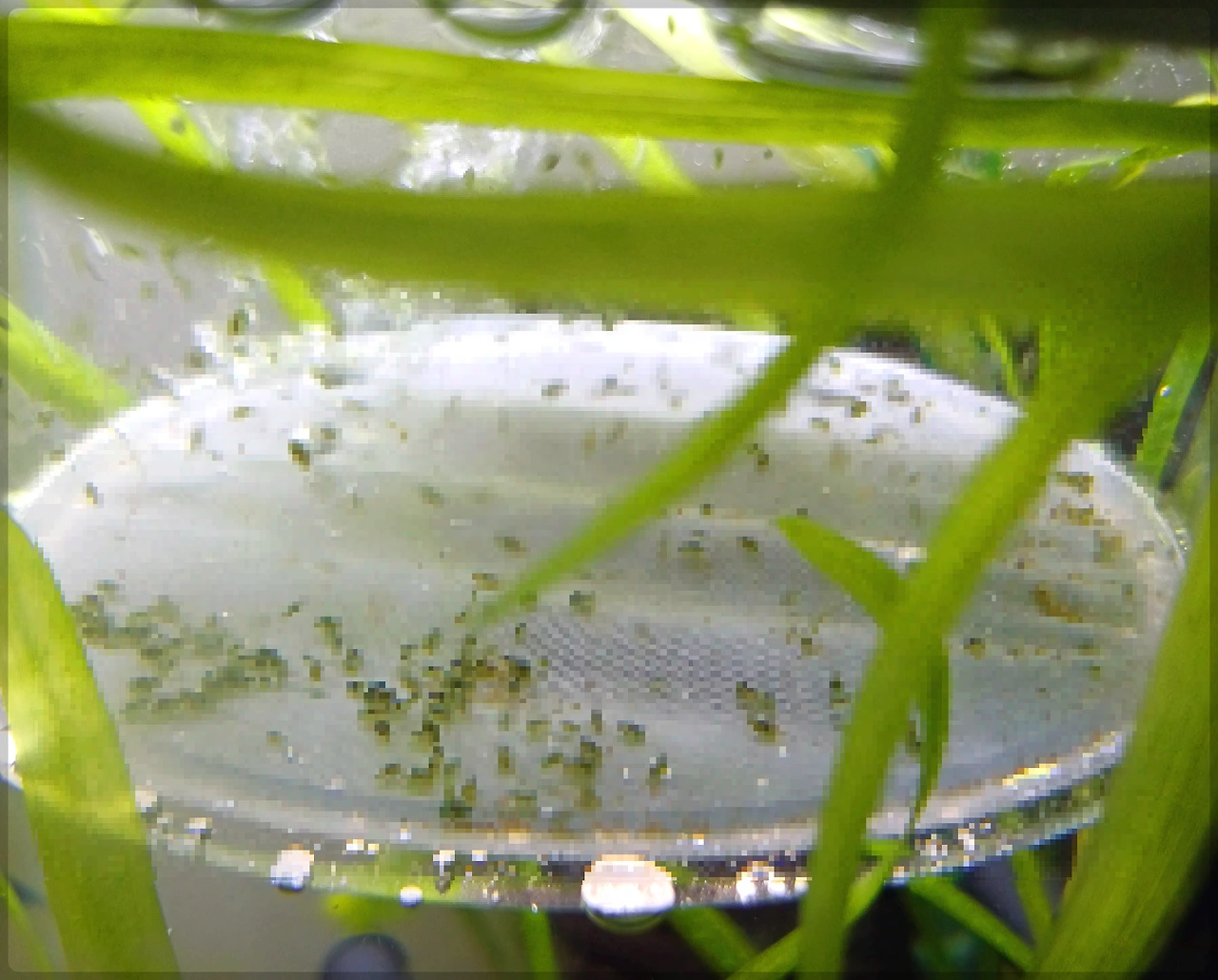 두 번째, 몇 날 며칠이 걸리든 새우를 한 마리씩 구출해 내고 잡아 내어 다시 어항을 세팅하기엔 커봤자 2~3cm 막 태어난 새우들의 크기는 2mm~3mm 정도밖에 안 되는데 이걸 어느 세월에 건져내고 또 건져낸 이것들을 어디다가 두겠느냐고. 그래서 이사작전도 리젝.