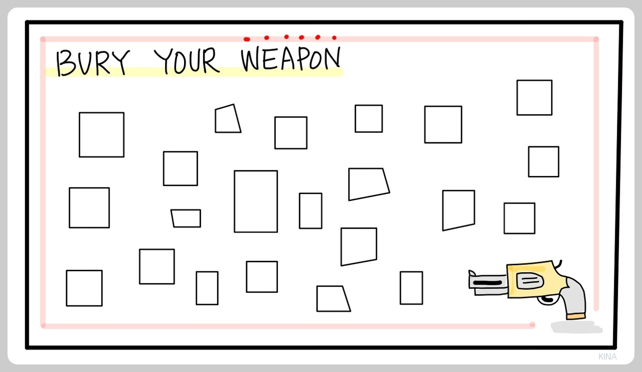 그 의미를 활용해 교육 & 워크숍에 참여한 대상자들에게 마음에 있는 무기를 스스로 내릴 수 있도록 하여 참여적 분위기를 형성할 수 있도록 돕는 도구입니다.