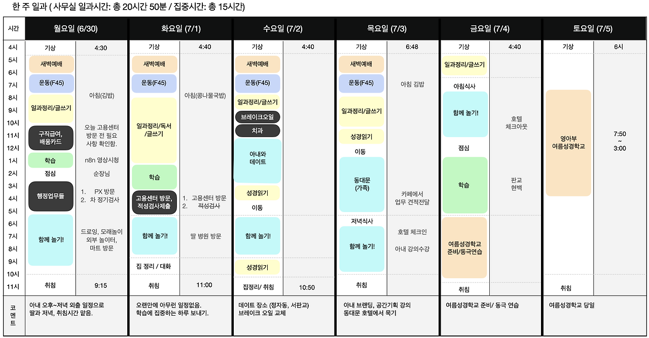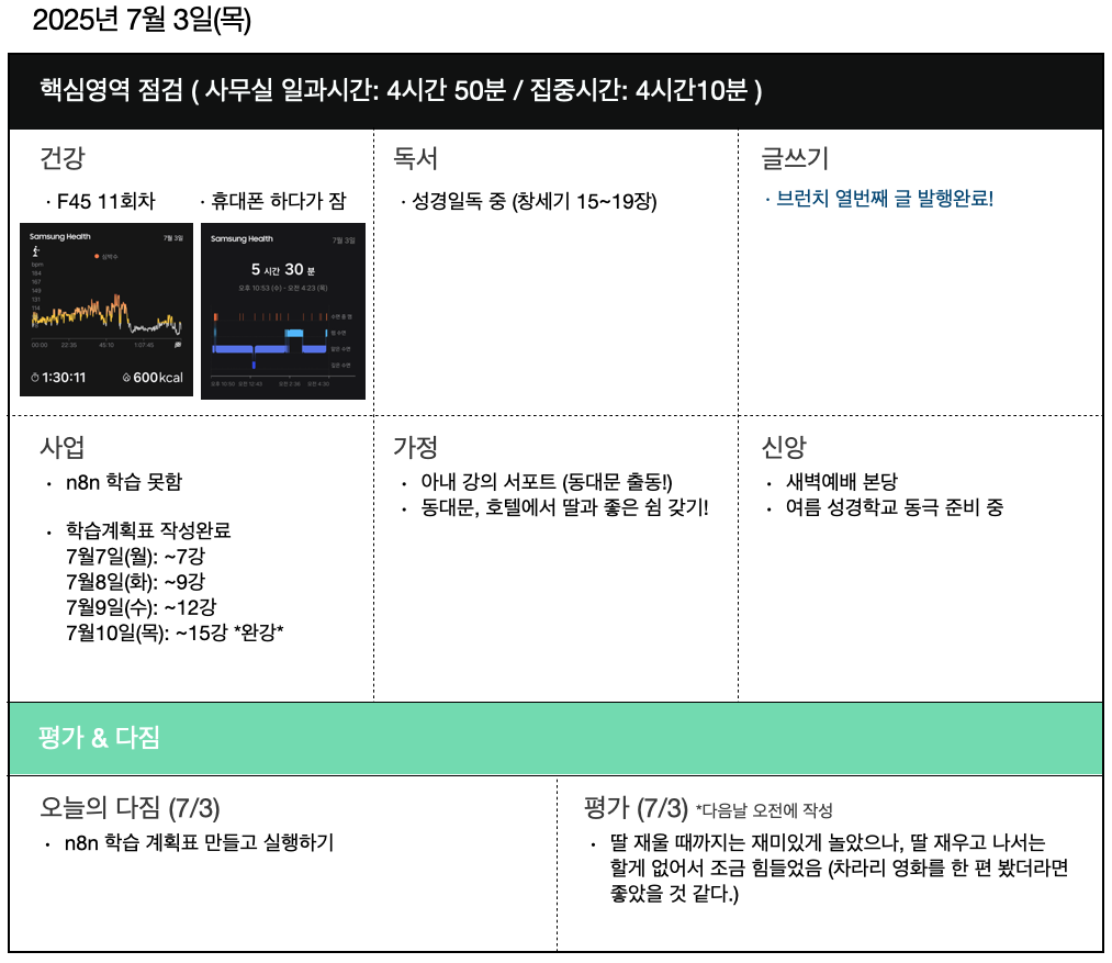 2025년 7월 3일(목), 7월 4일(금), 7월 5일(토)의 일과를 나눕니다.