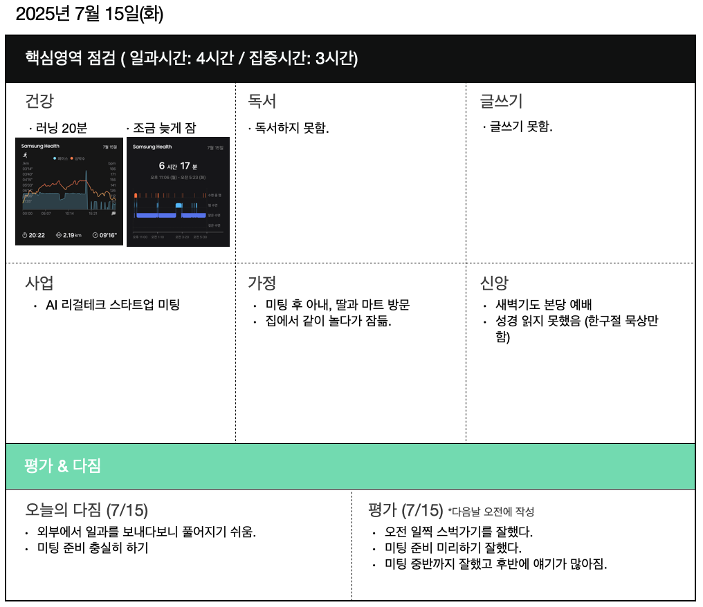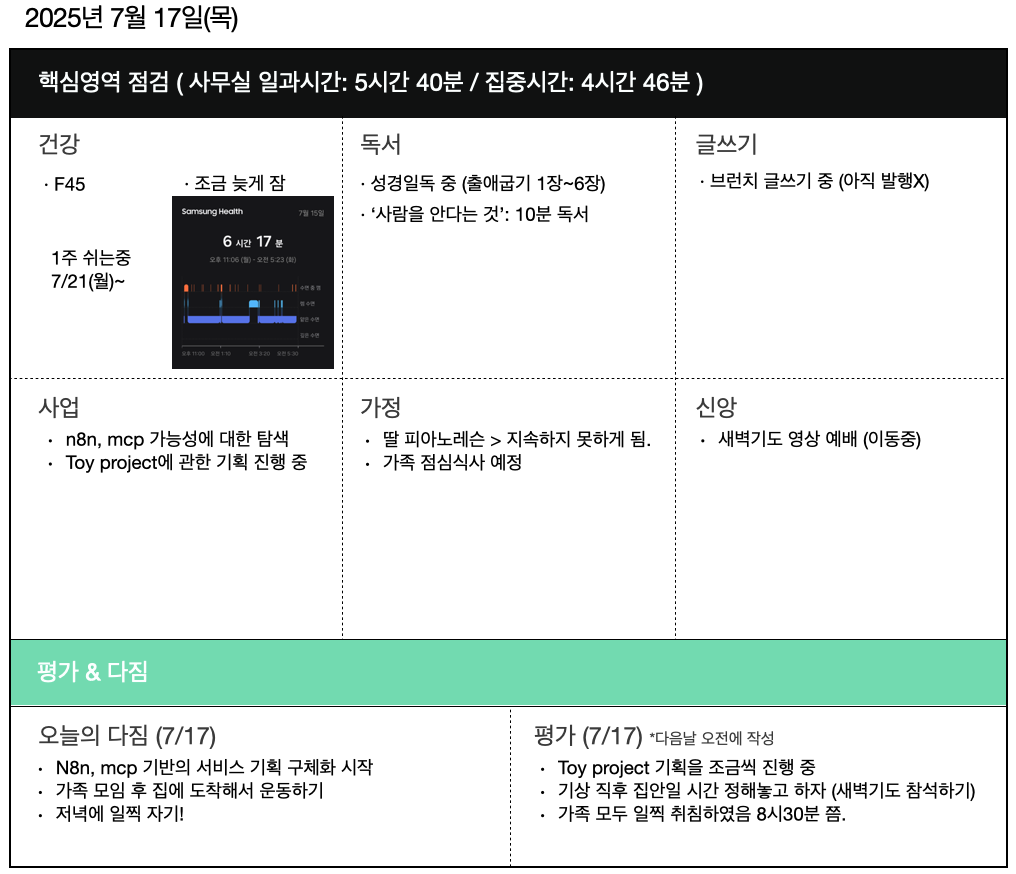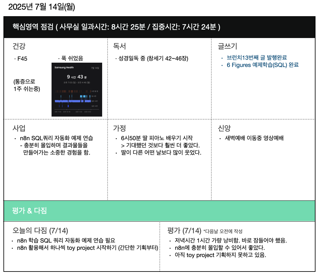 2025년 7월 14일, 15일, 16일, 17일까지의 일상을 공유합니다.