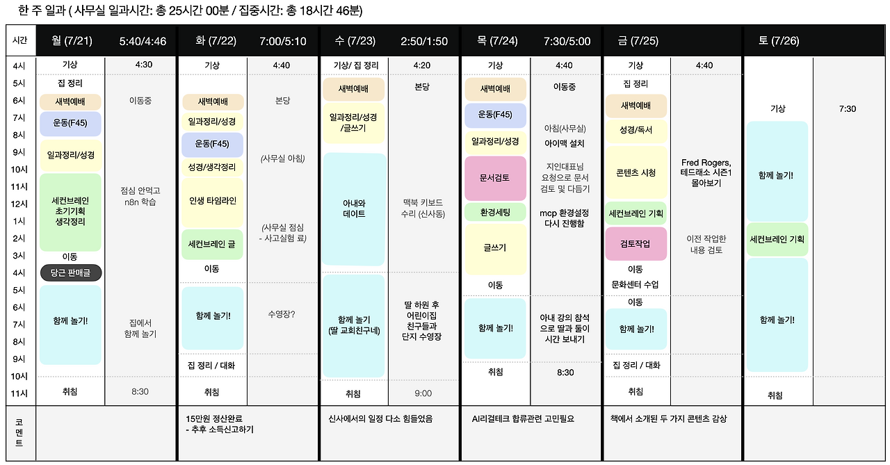 2025년 7월 24일(목), 25일(금) 일과를 공유합니다.