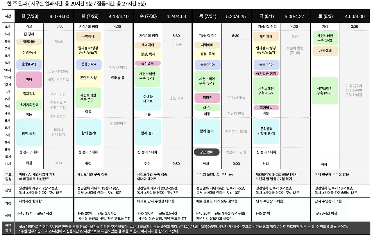 7월 28일(월)~ 8월 5일(화)까지의 일과를 나눕니다.
