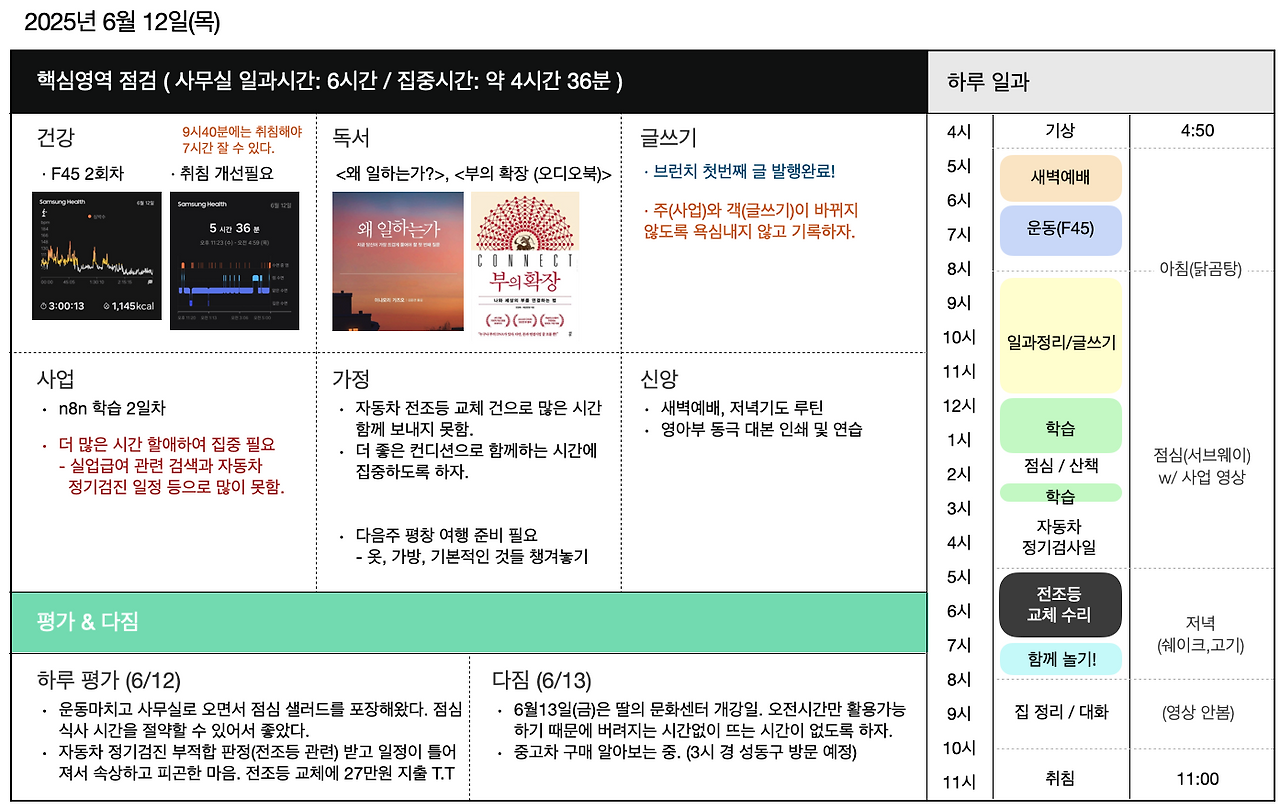오늘(6/12,목)의 제 일과를 공유합니다. *발행일(6/13,금) 기준으로는 어제 일과입니다.