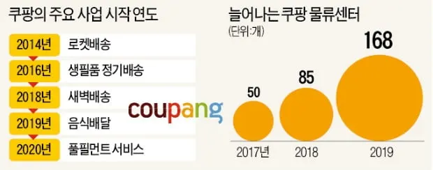 반면 쿠팡은 소프트뱅크의 투자금을 등에 업고 해마다 엄청난 누적 적자를 감수하며 오로지 시장점유율 1위를 향해 달렸습니다.