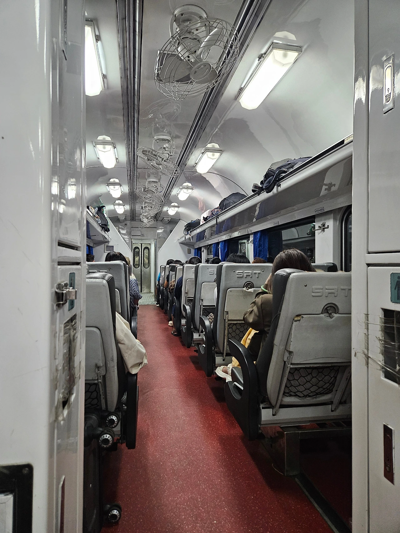 기차 내부는 깔끔해요. 선풍기가 있지만 안 쓰고 에어컨을 틀어 주었습니다. 저는 추위를 잘 타는 편이라 그런지 긴 바지에 바람막이를 걸쳤는데도 좀 쌀쌀했어요.