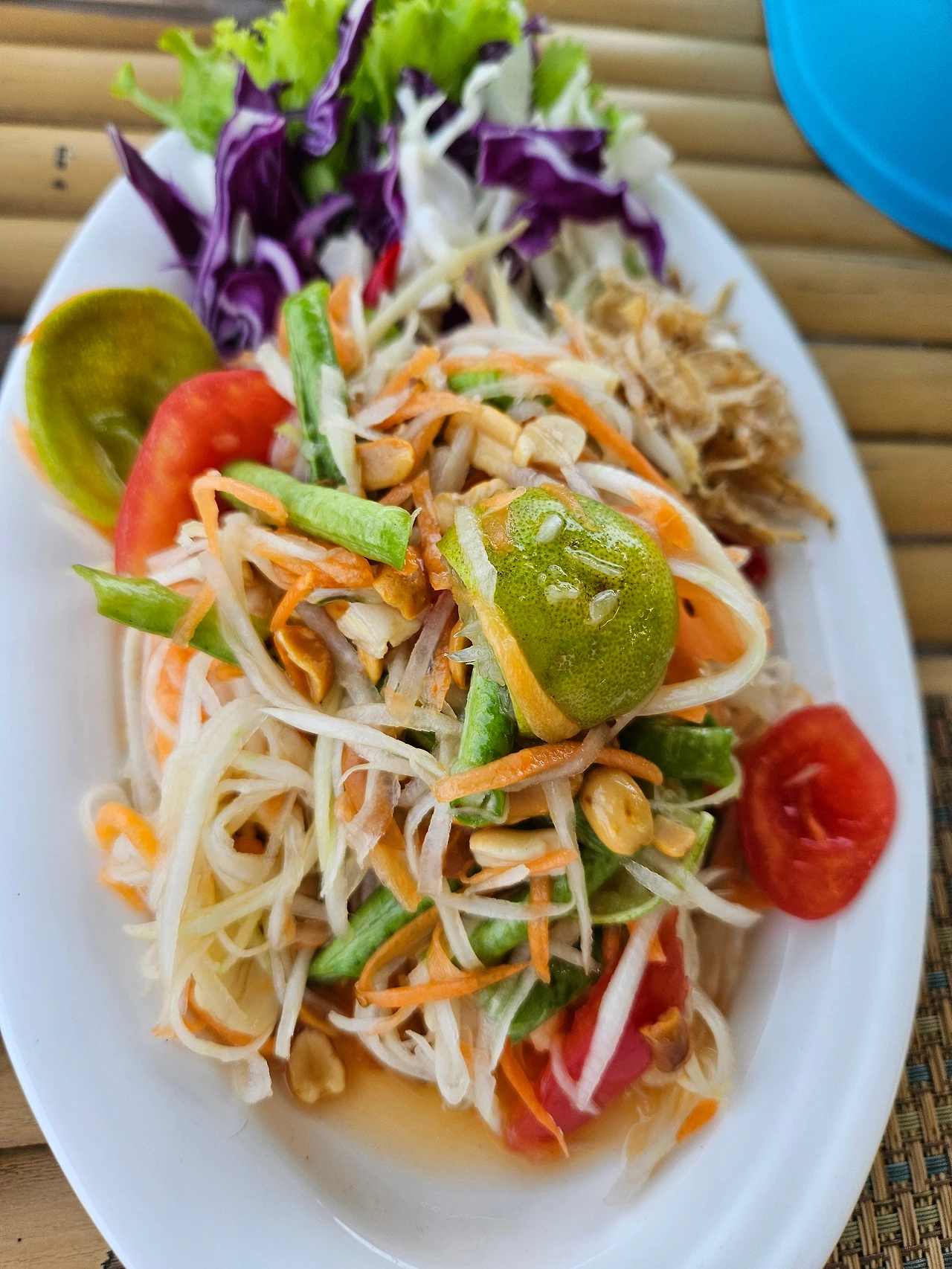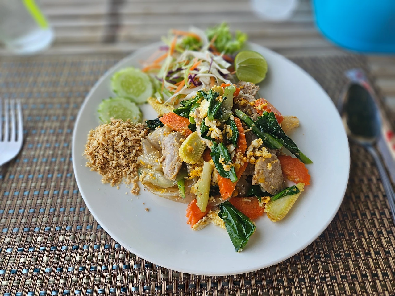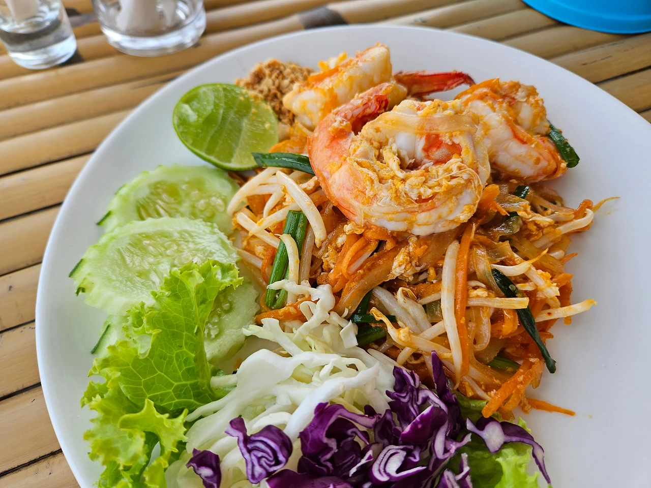 저는 쏨땀을 무지 좋아하고, 캐슈넛이 들어간 튀긴 오리도 고소해서 맛있게 먹었어요. 팟타이야 뭐 맛이 없을 수가 없는 맛. 다만 망고 스무디는 물이 들어가서, 전문점에서 파는 것보단 좀 밍밍했습니다. 저희는 평소에 술을 거의 하지 않지만, 이때는 해변에서의 맥주 한 잔으로 행복을 살 수 있었어요.