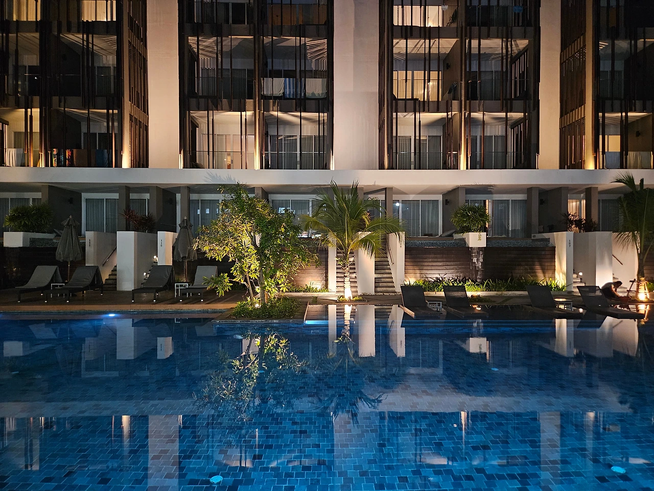밤이나 낮이나 수영장 자체도 꽤 근사해요. 하루 밖에 수영을 못한 게 아쉬울 뿐.