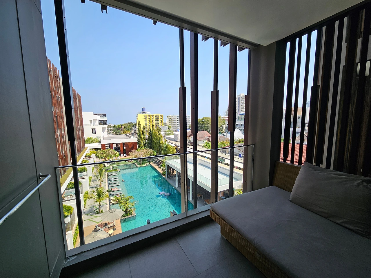 4성급에 애매한 가격. 익숙한 글로벌 체인의 브랜드도 아니면서 3박에 50만 원을 냈어요. 아무리 성수기여도 태국이 원래 이런 가격이었나? 싶었죠. 처음엔 그저 더위를 많이 타는 배우자를 위해, 대형 쇼핑몰과 가까운 위치만 고려해 선택한 숙소였습니다. (후아힌에 큰 쇼핑몰이 2개인데, 그중 하나인 마켓빌리지를 걸어갈 수 있는 거리예요.)