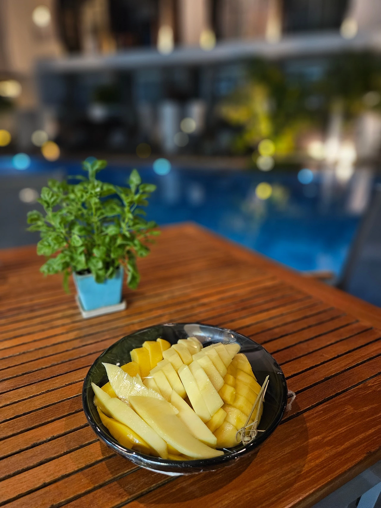 체크인 당일, 마켓빌리지에서 망고 세트를 샀어요. 칼을 요청하니 위험해서인지 룸에는 못 빌려준다고 하더라고요. 그럼 이 망고는 어떡하지! 저희가 고민하니까, 대신 풀 바(pool bar)에서 망고를 잘라주신다는 거예요?