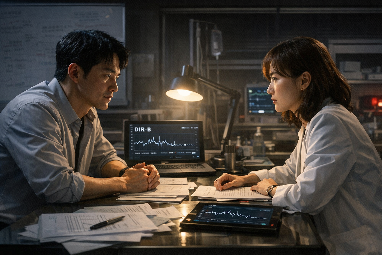 이연주는 바로 대답하지 않았다. 대신 테이블 위에 놓인 데이터 요약본을 천천히 넘겼다. DIR-B 유지 시간, 붕괴 패턴, 조건별 편차. 그녀는 이미 같은 결론에 도달해 있었다.