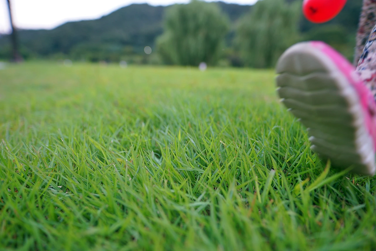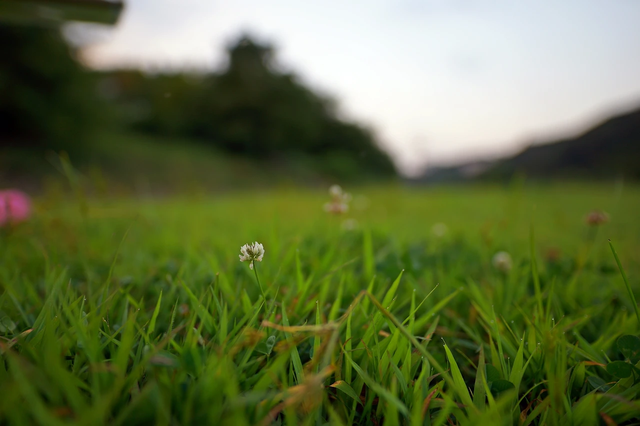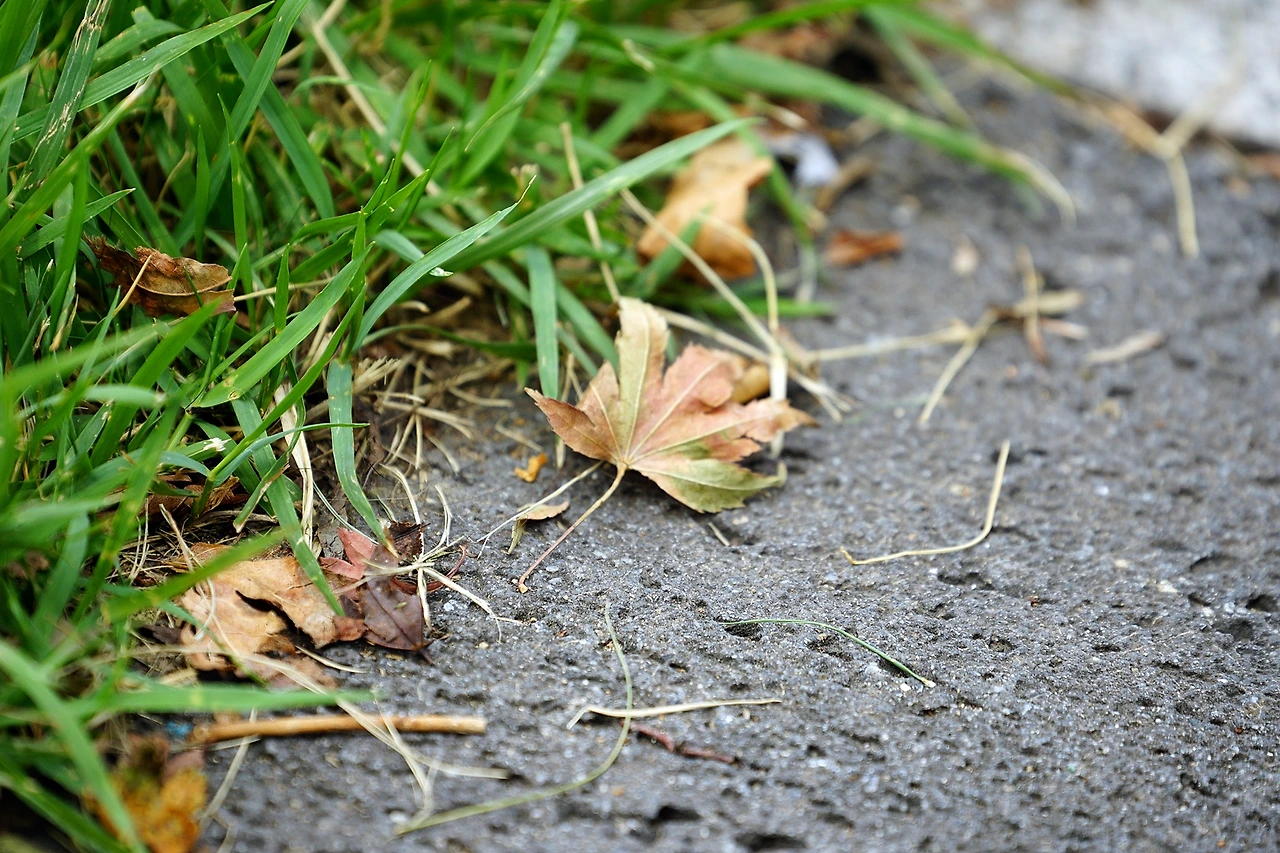녹색의 잔디속에 흩어져 있던 낙엽 하나. 가을이 오려나 보다.