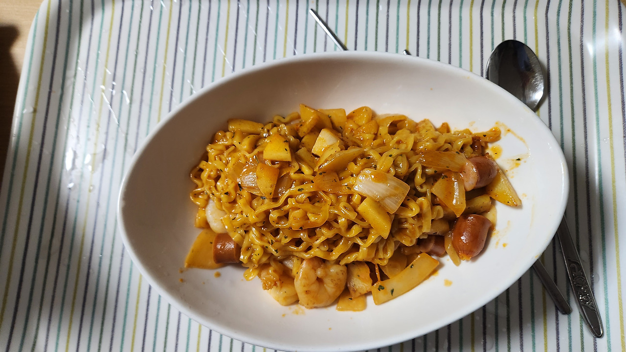 나른한 하루 불닭볶음면과 스파게티