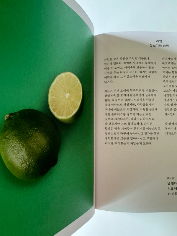 - 라임: 장난기 - 무화과: 성숙함 - 올리브유: 성숙함