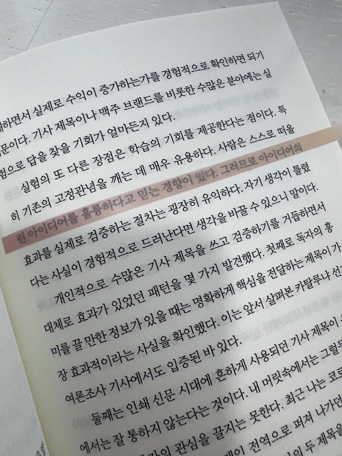 실험의 또 다른 장점은 학습의 기회를 제공한다는 점이다. 특히 기존의 고정관념을 깨는 데 매우 유용하다사람은 스스로 떠올린 아이디어를 훌륭하다고 믿는 경향이 있다. 그러므로 아이디어의 효과를 실제로 검증하는 절차는 굉장히 유익하다.