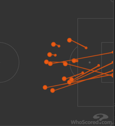그러나 루카쿠는 끝까지 센터백 둘을 혼자 상대하려고 합니다. 이기지 못함에도 불구하고 그 위치를 지나치게 고수했고, 이는 다른 선수들에게 공간을 창출하지도, 팀적인 시너지도 이끌어내지 못합니다.