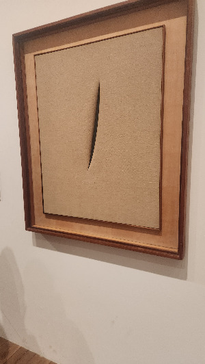 루치오 폰타나의 “기다림 (Spatial Concept - Waiting, 1960)”이라는 칼로 날카롭게 찢긴 캔버스 작품은 당시의 작품으로서는 충격적이었을 것이다. 미색 캔버스의 표면엔 기본 베이스 칠도 없이, 날카로운 절개만 남았다. 물론 창작자의 고통을 느끼게 하는 일면도 있었다. 그리고, 단순한 평면을 넘어, 그 뒤를 상상하게 만드는 하나의 틈. 그 틈은 파괴가 아니라 가능성이었다. 예술이란 결국 경계를 허무는 것이 아닐까? 어쩌면 나도 틈을 좋아한다는 생각을 했다. 틈이 보여주는 것은 의미의 확장이 방대할 것이라 판단되기 때문이고, 그 틈새를 보고 싶어 하는 사람이 결국 창작자가 아닌가 생각했다. 파괴는 늘 창조를 부른다. 어떤 것을 파괴해야 할까? 현대미술은 헤겔이나 니체 이후로 파괴만 남은 것인가? 테이트 모던에서 본 파괴와 틈, 해체와 재구성의 작품들을 통해, 현대 예술이 더 이상 하나의 완결된 서사를 전달하지 않고, 파편적 조각들로 구성된 새로운 서사를 제시한다고 판단했다.