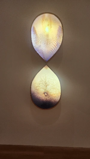 미술관 한가운데는 한국 이미래 작가의 대규모 설치미술이 자리하고 있었다. ‘열린 상처’라는 설치작품. 얇게 찢어진 갈색 천들이 높이 매달려 흔들리지 않는 듯 흔들리며, 부드럽게 겹쳐지는 모습이 마치 이 공간이 새로 태어나기 전의 모습으로, 시간의 흐름을 뒤집어 시각화한 듯했다. 그 아래 서서 시선을 올리자 거대한 스케일이 몸을 감싸는 듯한 기분이 들었다. 작품은 무겁게 나를 눌렀고, 산업사회의 생산물과 현대사회의 쓰레기가 맞닿아 있는 듯한 그 감각은 돌이킬 수 없는 폐허 속을 거니는 듯한 느낌을 남겼다.