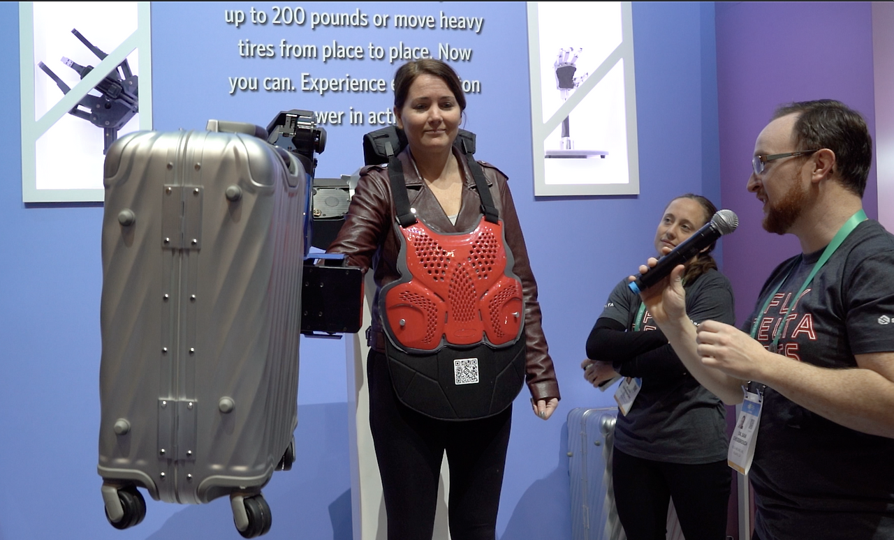 또한 델타항공 부스에서는 마치 아이언맨의 수트를 연상시키는 웨어러블 로봇도 등장했다. 체험자들은 이 수트를 착용한 후 30kg가 넘는 여행용 가방을 가뿐하게 들어 올렸다. 온몸에 걸쳐 착용하는 이 수트형 로봇은 200파운드(90kg)의 짐까지는 쉽게 들어 올릴 수 있다고 한다. 공항에서 무거운 짐을 나르는 직원들에게 적용되면 안전과 효율 둘 다 잡을 수 있을 듯하다.