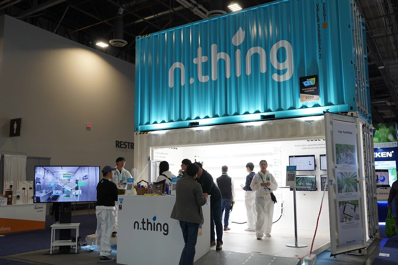 스마트 농장에 들어가는 제품들을 개발하는 엔씽의 주력 상품은 플랜티 큐브다. 컨테이너 내에서 작물을 심은 선반을 수직으로 쌓아서 키워 ‘버티컬팜(Vertical Farm)’이라고도 한다. IoT 기반 센서를 활용해 농장 환경을 모니터링하고 컨트롤할 수 있다. 온도·습도·조도·산소와 이산화탄소 농도 등을 분석하고 이를 최적화하여 어디서든 작물의 일정한 양을 지속적으로 생산할 수 있게 할 수 있다. 우리나라뿐만 아니라 중동 등 다양한 글로벌 지역에 진출 중이라고 한다. 엔씽은 2020 CES에서 스마트시티 부문 혁신상을 수상했다.