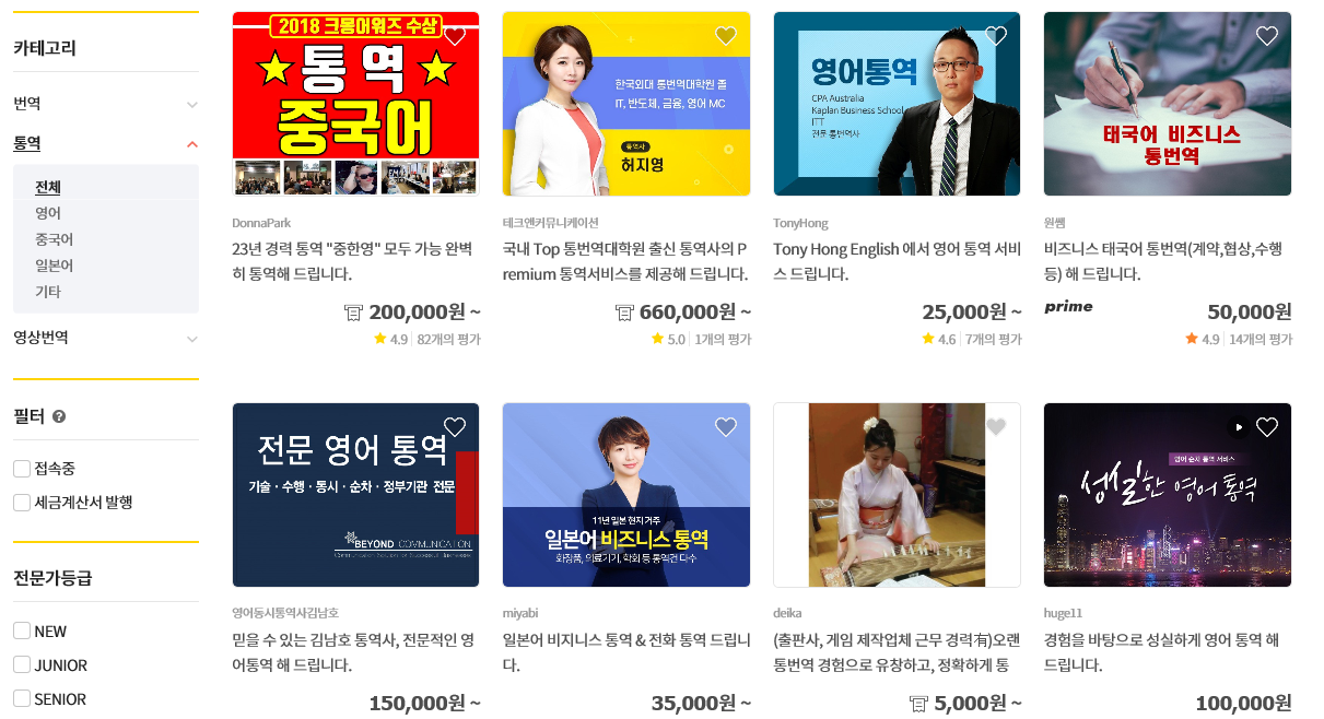 대표적으로 한국 외대 통번역센터(http://www.hufscit.com/)의 경우는 말 그대로 한국에서 통역에 있어서 최상위 레벨에 있는 사람들인데 시급으로 계산하면 10만 원을 웃돈다. 하루 종일 식당에서 설거지 아르바이트를 벌 수 있는 돈을 1시간 동안 벌 수 있는 것은 '그들이 그럴만한 가치가 있는 사람들'이고 그러기 위해서 긴 시간을 노력하고 학습을 위한 비용을 투자해서 그 자리에 있기 때문이다.