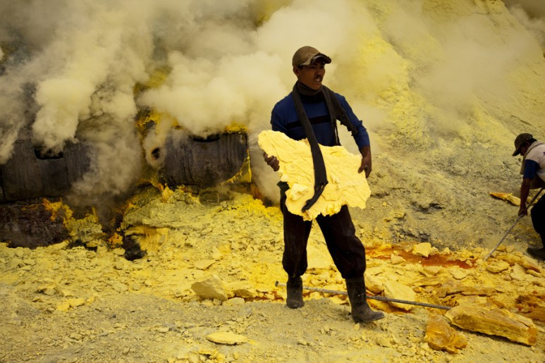 어느 다큐멘터리 프로그램에서 유황 나르는 노동을 이렇게 표현한 적이 있었다. 어깨가 찢어질 것 같은 고통과 방독면 하나 없이 매캐한 가스가 뿜어져 나오는 화산 속으로 들어가 유황을 채취하는 행위는 신체의 수명을 야금야금 갉아먹는 직업이니 그렇게 표현하는 것이 전혀 이질감이 없을 정도이다. 하면 할수록 서서히 죽어갈 수밖에 없는 직업인 셈이다.