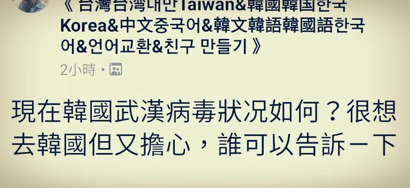 평소에 자주 들여다보는 SNS 내 대만 한국 간 친구들의 교류를 돕는 PAGE에서 질문이 하나 올라왔다.