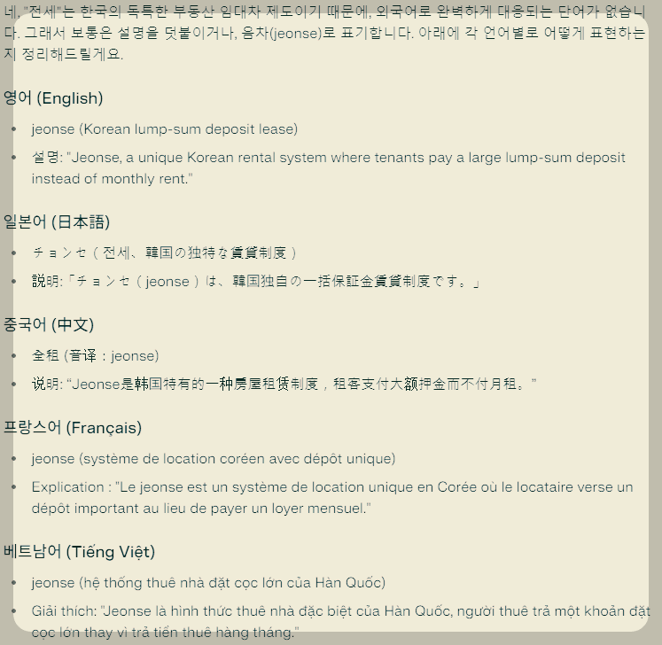 그때는 무심코 넘겼던 '전세 문화'가 최근 국내에서 다시금 다뤄지게 되면서, 나 또한 외국에서는 한국의 전세라는 문화를 어떠한 관점으로 바라볼지 궁금한 마음에 확인을 해 보니 아래와 같이 답변을 받았다.
