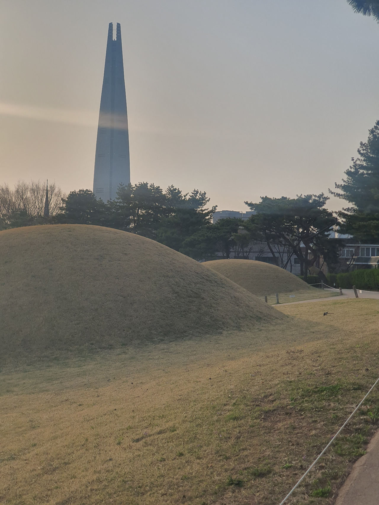 <롯데 타워가 잘 보이는 이 곳. '방이동 고분군' 과거의 서사와 현재의 숨 쉬는 모든 피조물이 모여든 곳>