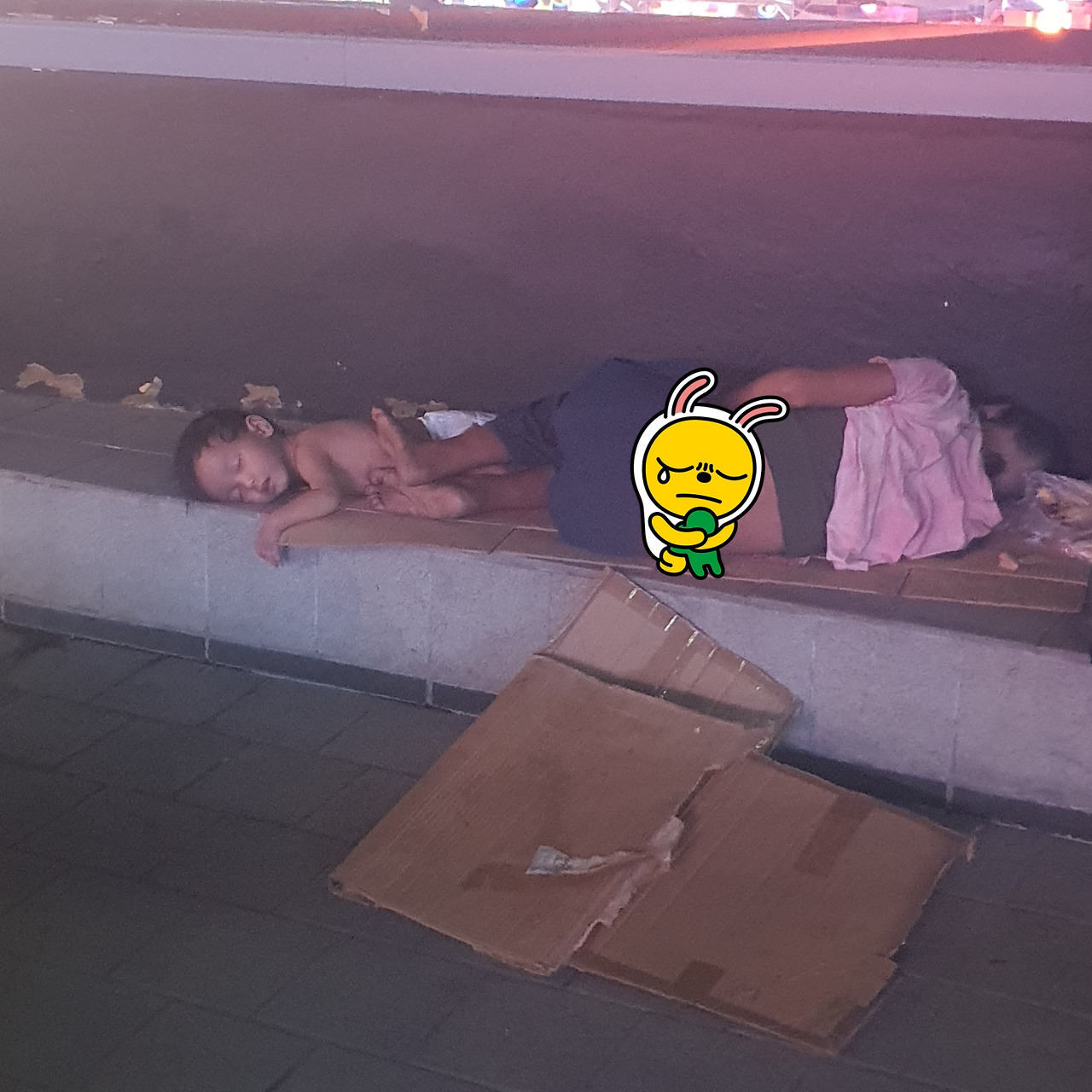 그래서 그들의 행동 하나하나를 천천히 지켜보기로 했습니다. 나름 조직적으로 움직이는 것 같기도 했습니다. 흡사, 한국에서 문제 되는 가출팸이 떠 올랐습니다. 다른 점이 있다면 이제 막 기어 다니는 아이를 안고 있는 여성들이 함께 있었다는 것 정도. 아이는 익숙한 듯 바닥을 놀이터 삼아 놀기를 반복했습니다.