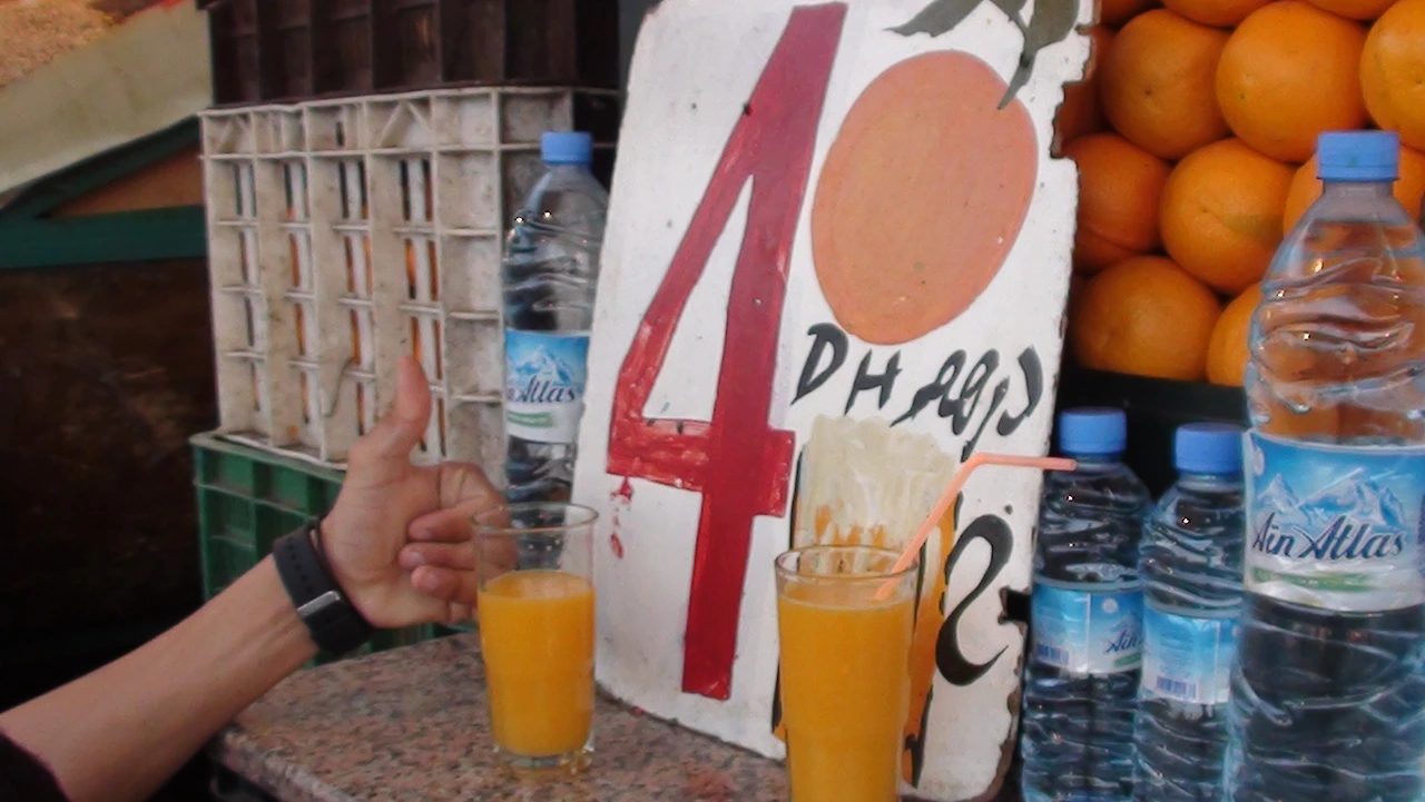 한글로 발음하면 디르함. 다름 아닌 모로코 화폐 단위이다. 1 디르함의 한화 가치는 약 140원. 현재 환율로 계산하더라도 1잔에 4 디르함 하는 오렌지 주스 한잔의 가격이 600원이 채 안 되는 셈이었다. 여행의 배경이 2013년인 것을 감안했을 때 현재도 4 디르함에 팔고 있을지는 모르겠다. 하지만 물가 상승으로 현재는 그 2배인 8 디르함이라고 하더라도 한화로 천 원 남짓이니, 한국에서는 0 하나를 더 붙여야 겨우 먹을까 말까 한 천연 착즙 주스를... 모로코 마라케시에 도착하자마자 원 없이 마셔대었던 기억이 있다.