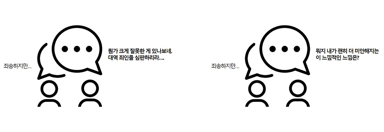 “죄송한 거랑 고마운 거랑 뭐가 다르냐. 한 긋 차이면 똑같은 거지”