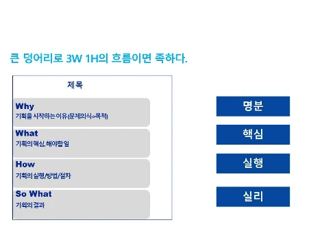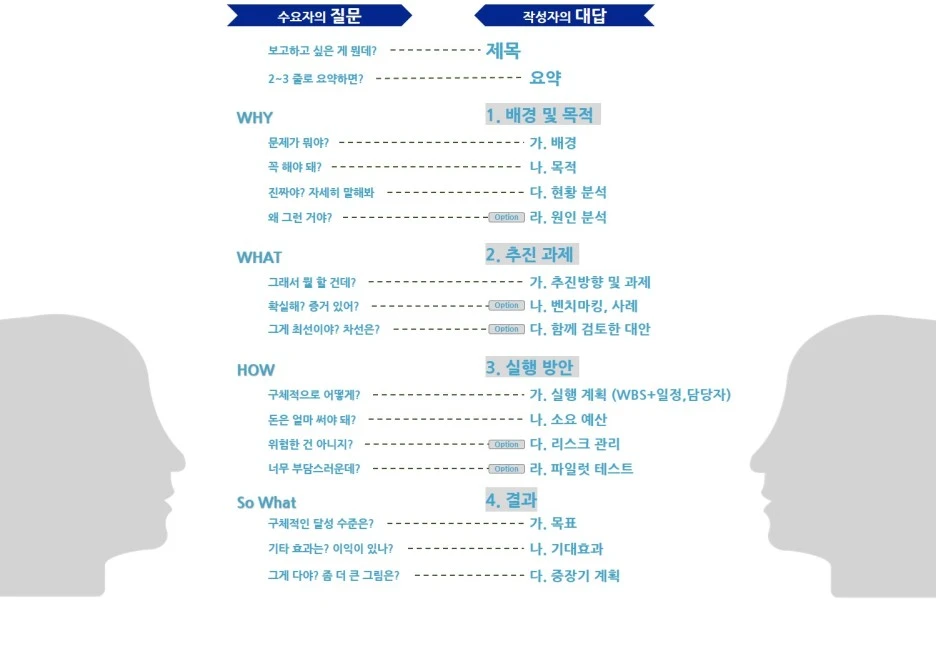 3W 1H의 기획서 스토리에 상사 유형에 따른 기획서 추가 구성 항목을 합쳐서 아래 그림으로 정리해 보도록 하겠습니다.