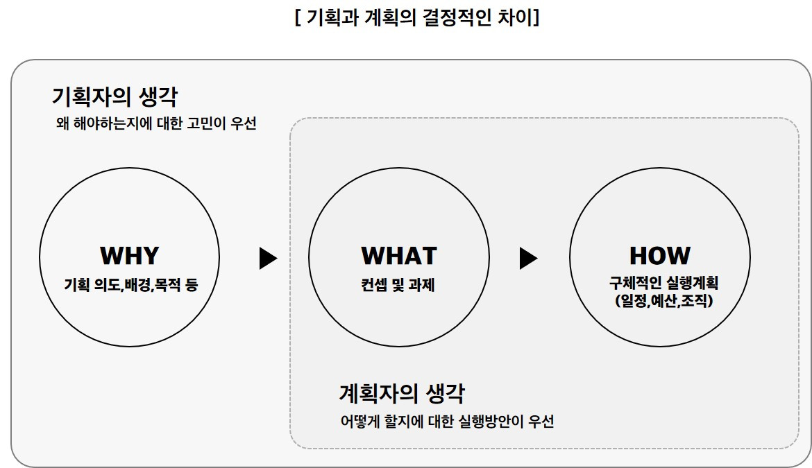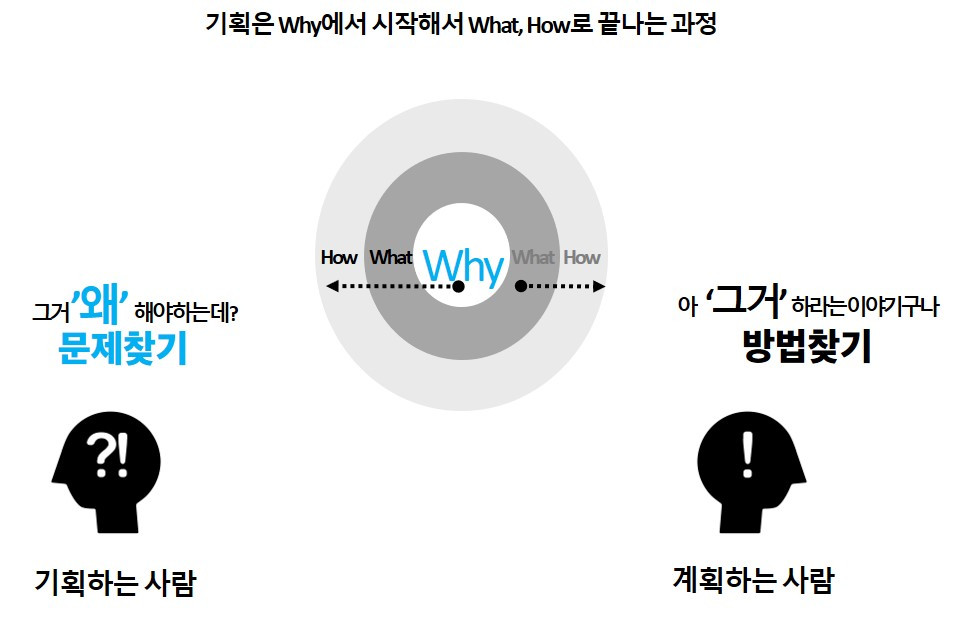 한 마디로, Why부터 시작하면 기획이고 What부터 시작하면 계획이라고 할 수 있습니다.