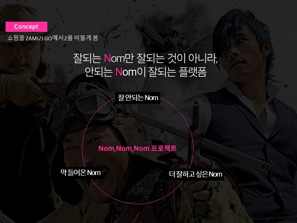 모 인터넷 쇼핑몰 프로젝트로, 쇼핑몰에 입정하는 사업자들을 지원하기 위한 기획. 영화 놈놈놈이 유행했던 것에 착안하여, 그 영화에 비유하여 놈놈놈 프로젝트로 컨셉을 제시함