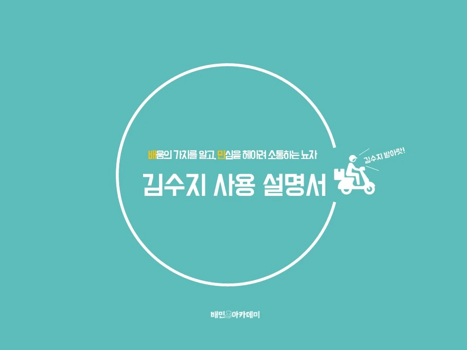 아래 기획서 표지는 취업 준비생이 배민 아카데미에 지원할 때 썼던 포트폴리오의 표지입니다. 배달의 민족 시그니처 칼라를 활용해서 표지색을 꾸몄고, 배민을 2행시로 부제를 달아서 기획서의 제목을 2줄로 완성해 보았습니다. 추가적으로, 배민은 재미를 추구하는 기업이니까 기업 문화 특성에 맞춰 조금은 가볍고 위트있는 내용을 추가해서 표지를 완성하였습니다.