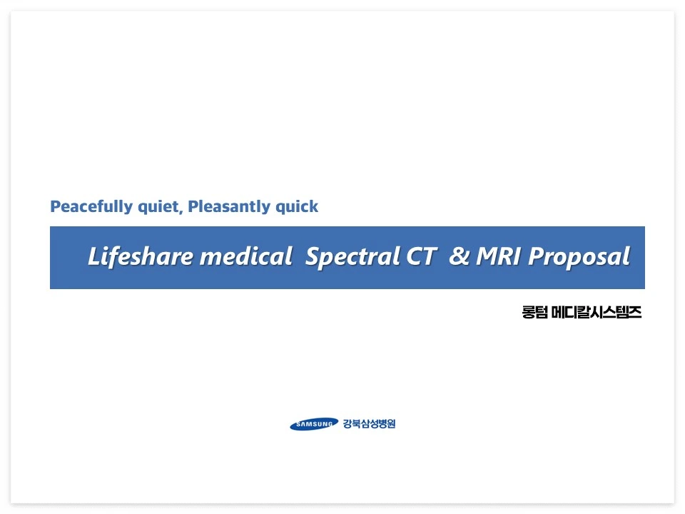 먼저, 표지는 간결하면서도 기획의 핵심이 명확하게 보이도록 작성하는 것이 좋습니다. 이렇게 하기 위한 구체적인 방법은 불필요한 이미지나 부수적인 정보를 제거하고, 제목을 두 줄로 쓰는 것입니다. 좀 더 쉬운 이해를 위해, 모 메디칼 회사에서 삼성병원에 제안할 때 썼던 제안서의 표지를 예로 들어보겠습니다.