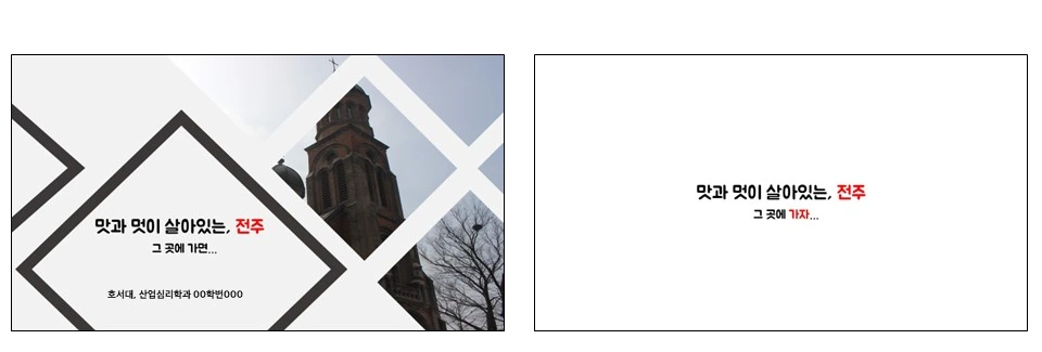 아래 기획서는 후배의 여행기획서를 지도할 때 썼던 내용인데, 제목에서는 ‘그곳에 가면’ 이라고 열고, 본문에서 전주여행의 특징을 언급한 뒤에 클로징 페이지에서 ‘그곳에 가자’로 닫았습니다. 표지와 클로징 페이지가 전체 기획서의 내용을 감싸면서 정리되는 효과가 있습니다.