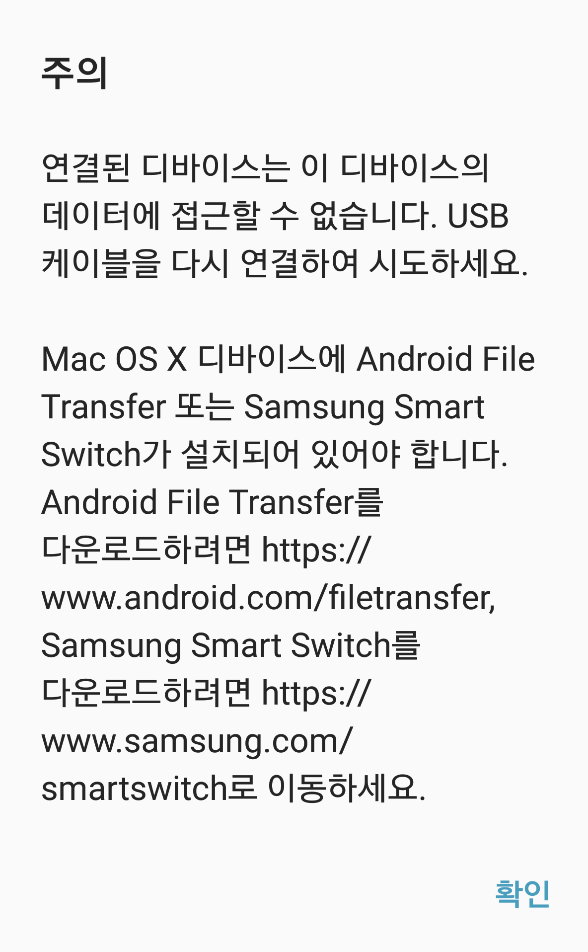새 폰도 역시나 개발폰 역할을 하는데, 맥에서 usb 연결을 할 때마다 android file transfer 깔라는 팝업이 뜬다. 이 팝업은 없앨 방법도 없어서 연결할 때마다 일일이 확인을 눌러줘야 해!